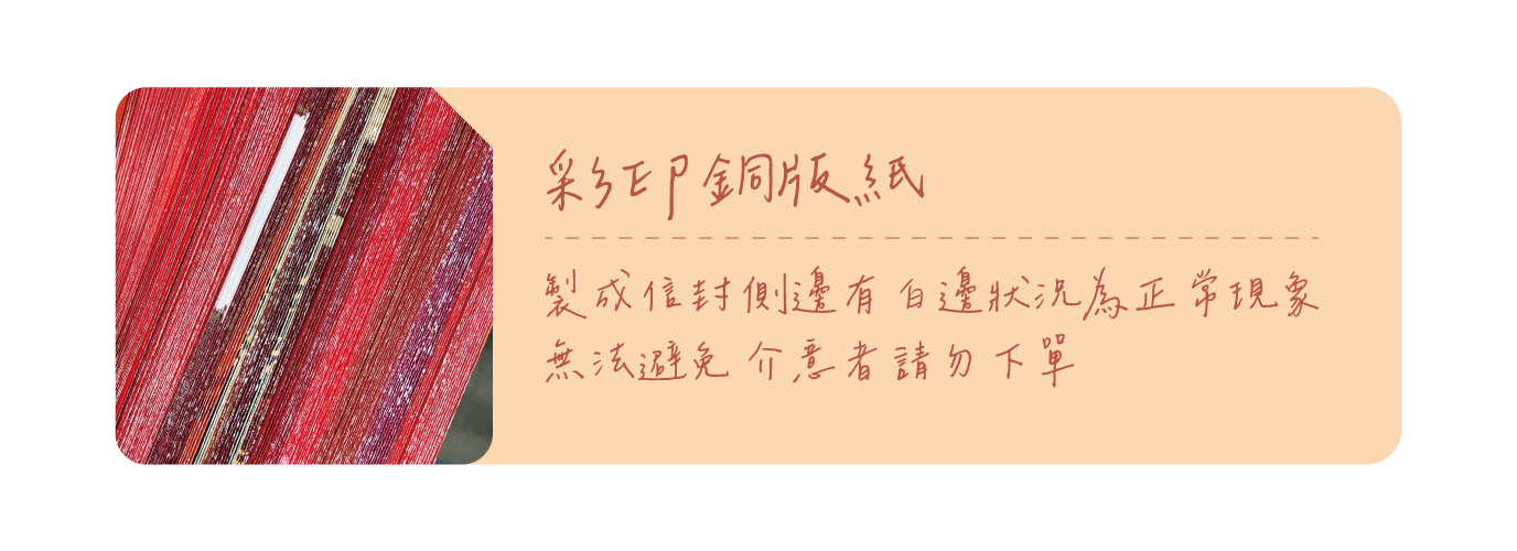 .信封手工製作及保存,會導致紙張或包裝產生小壓痕.痕跡.輕微髒污,請務必斟酌考量訂購。