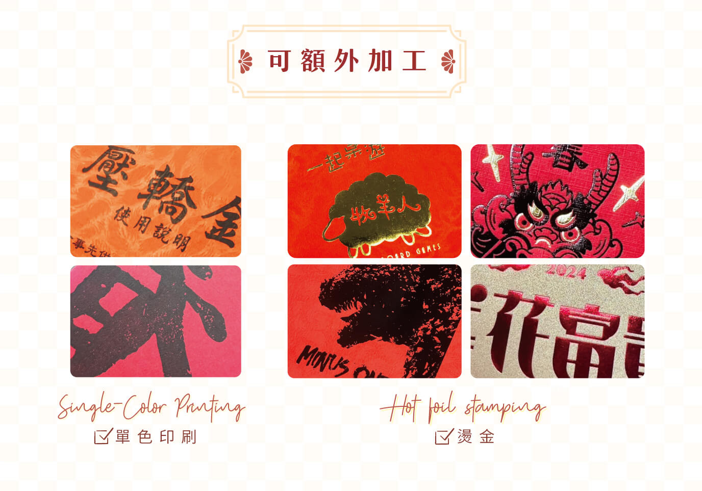 紅包單價不包含燙金.單色印刷及任何加工